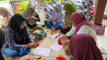 Dalam sesi praktek, ibu-ibu diajarkan teknik dasar membuat masing-masing bunga secara bertahap, mulai dari membentuk kelopak, menyusun kelopak dan putik bunga, hingga menambahkan daun sebagai pelengkap. Setelah semua bunga siap, peserta kemudian merangkainya menjadi buket cantik yang dapat digunakan sebagai hiasan rumah atau hadiah unik.