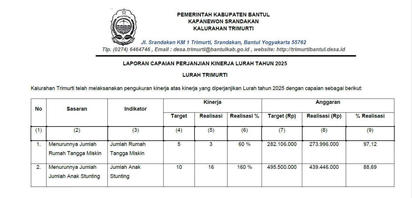 - Laporan Kinerja Lurah Trimurti Tahun 2025